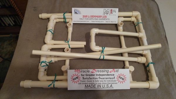 A unique & universal adjustable dressing tool to maximize your time & energy with this exceptional new daily living aid for XL thru 6XL size 39" > 62". Compact for shipping with removable handles & cross tube.